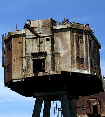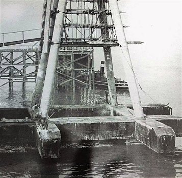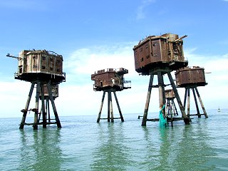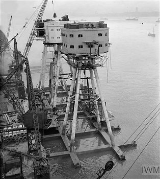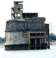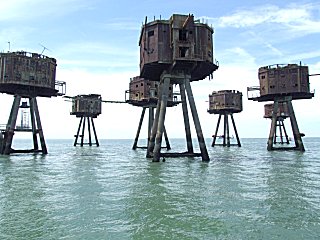 although these were never used for offshore radio broadcasts. After the successful deployment of his Navy Sea Forts in the Thames Estuary, Guy Maunsell, together with Sir Alexander Gibb, was commissioned to build sea forts for Army use in defending the Mersey Estuary in a plan to intercept enemy aircraft trying to bomb the vital docks and industry of Liverpool. The threat and urgent need for these resulted in a significantly different modular design that could be built and placed more rapidly. The Mersey Estuary contains a number of sandbanks and Maunsell believed that its sea bed would be too soft to support the style of pontoon-supported forts that had been used for the Navy in the Thames Estuary. The design for the Mersey forts used a self-burying concrete lattice base, integral to the structure but not impeding the natural movement of sand and shingle in the estuary which would have affected the shipping lanes. Each fort consisted of seven individual towers, linked by tubular steel walkways, placed in relative positions that had been proved successful for land-based installations. The towers comprised one Bofors (anti-aircraft gun) tower, four gun towers, a searchlight tower and a central control tower. The individual towers consisted of four reinforced concrete legs set in a self-burying concrete grid. The legs supported a two storey octagonal steel structure with military equipment on the roof. Built before the Thames Estuary forts, these were in deeper water but the design was followed for those built later in the Thames. The original intention was to place 38 towers in the Mersey Estuary, but only 21 (three forts) were actually constructed and deployed. 49 towers were planned for the Thames Estuary but, again, only 21 (three forts) were built and deployed. A plan for 13 towers in the Humber Estuary never materialised. Commencing in October 1941, the Mersey Forts were built at Bromborough Docks on the Wirral by Cleveland Bridge & Engineering Co Ltd, with each tower taking about eight weeks to construct. Completed forts were deployed between 7th October 1942 and 25th July 1943. Queens Fort was located near the Bar Lightship, Burbo Fort was placed south of the Bar and Formby Fort was positioned north of the Bar. The Mersey Estuary sea forts were never actually engaged in action against the enemy. |