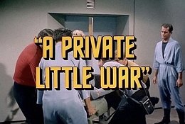 Tyree, McCoy and Kirk reach them, but not in time to stop one of the villagers from killing her. Grief-stricken, Tyree picks up a gun and tells Kirk that he wants more weapons. Fortunately, McCoy has the presence of mind to retrieve the stolen phaser. Not for the first time does Kirk flout the Prime Directive, and orders Scotty to manufacture a hundred flintlocks for the hill people, putting them on an even footing with the villagers.