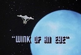 A strange, alien device appears in life support and it seems that the buzzing of insects has followed them back to the Enterprise. Kirk orders a cup of coffee and, as he drinks it, the movements of the bridge crew appear to become slower and slower until they are 'frozen' in a stationary position. An alien woman appears who introduces herself as Deela. She is queen of the Scalosians and explains to Kirk that it is not his crew that have slowed down but he who has speeded up, matching the highly accelerated existence of the Scalosians.