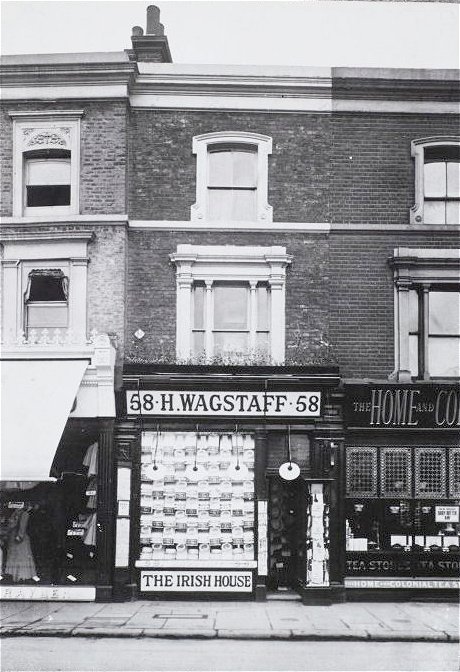 boutique. 405 Portch Bros. fishmongers c.1970 406 Johnson's the Modern Outfitters 1978: Lloyd Johnson influenced music fashion, supplying designs to Bob Dylan, Keith Richards, David Bowie and many others. A Mod from Hastings, his beginnings were in acquiring tab collar shirts for The Beatles and The Rolling Stones at Cecil Gee's in Charing Cross. He opened his own business, Heavy Metal Kids, in Kensington Market in 1967 and Johnsons, The Modern Outfitters on the King's Road in 1978. He designed the Mod clothes for the film 'Quadrophenia'. Early Picture 407 - 411 Woolworths Store c.1970 411 was The Riley Arms pub until demolished and rebuilt at 433 during 1952 reconstruction works. 407 was Albert E. Dawson, drapers in 1921, 409 was Mark Morgan, tobacconist in 1921, 411 was Edwin Waite, beer retailer in 1921. 408 Chelsea Nurseries (shop outlet) 1967 Advert Later Emperor of Wyoming (see 404) 410 Chelsea Building Society pre 1968 Mata Hari boutique moved here from its original location at 1 Hogarth Road c.1968.Owned by John and Annette Weysom who also owned The Battle of The Little Big Horn at 342A 412 Chelsea Gas (North Thames) Later A.&A. Gordon Ltd. Betting Shop now William Hill 413 - 415 A.J.Shore Ltd butchers c.1964 1967 Advert 414 Susan Locke boutique c.1967 Susan was the girlfriend of actor Jeremy Brett in the Sixties and was one of the first stockists of Terry de Havilland's shoes. 416 Travel Planning Ltd. c.1960 Milbanke Travel Ltd. c.1965 417 Regent Cafe workman's cafe c.1972 418 - 428 An oddity with the numbering occurs here so, despite the size, Chelsea Conservative Club appears to occupy numbers 418 - 428 421 F.C.Roger & Sons butchers c.April 1967 423 Jones ? c.1967 425 Nel's Greengrocers c.1970 429 Stacey's gents hairdressing c.Nov 1960 430 World's
