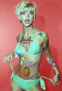 Goldie Hawn, who wore tiny bikinis decorated with slogans. Other regulars