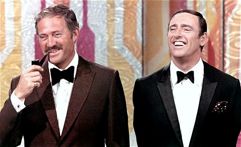 included Henry Gibson, Joanne Worley and Ruth Buzzi. Gary Owens was the announcer, opening the show in front of a large mike, with a hand cupped over his ear, announcing, “This is beautiful downtown Burbank,’ a reference to the area where NBS Studios was located. Pigmeat Markham appeared in a judge’s wig to repeat the phrase “Here come de judge” and Lily Tomlin played Ernestine, the switchboard operator, whose catch-phrase was “Is this the party to whom I am speaking?” A heavily-accented Arte Johnson peeked out from plant fronds, wearing a German helmet, quoting lines such as “Verrry interesting…but stupid!” Other catch-phrases included Goldie Hawn saying, “I forgot the question' and Dick Martin saying “I’ll drink to that”, or “You bet your sweet bippy!” The show always closed with the same signing-off routine, Dan Rowan saying “Say goodnight, Dick” and Martin saying, “Goodnight, Dick.” In between there were other regular words and phrases such as “Look that up in your Funk and Wagnalls” and “Walnuttos.” Regular routines included a cocktail party scene, a joke wall in which the cast opened and shut windows while quoting one-liners and the presentation of a ‘Fickly Finger of Fate’ award. A host of celebrities popped up to quote one-liners including Mae West, Jack Lemmon, Kirk Douglas and Jimmy Durante. John Wayne once appeared saying, “Well, I don’t think that is funny” and Sammy Davis Jr was featured several times... but each time he tried to sing he disappeared through a trap door. Even President Richard Nixon appeared on one show, saying “Sock-it-to-me.” The show was also controversial and one item in its ‘News of the Future’ slot caused the switchboard to be inundated with complaints. The item proclaimed: “Dateline the Vatican, 1988 – With marriage in the church now an accepted practice, the Archbishop and his lovely bride, the former sister Mary Catherine, both announced that this time it’s for keeps – if only for the sake of the children". ‘Laugh-In’ ran for five years, ending its run in 1973. The theme tune to the show was 'Inquisitive Tango'. Daniel Hale 'Dan' Rowan July 22nd, 1922 – September 22nd, 1987 Thomas Richard 'Dick' Martin January 30th, 1922 – May 24th, 2008 Joyce Audrey Botterill (Judy Carne) 27th April 1939 – 3rd September 2015 |
