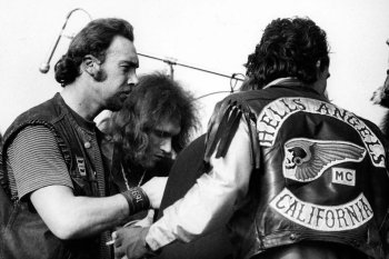 day”. Hell's Angel member Sweet William recalled an exchange between Cutler and himself at a meeting prior to the concert, where Cutler had asked them to provide security: "We don't police things. We're not a security force. We go to concerts to enjoy ourselves and have fun". "Well, what about helping people out - you know, giving directions and things?" "Sure, we can do that." When Cutler asked how they would like to be paid, William replied, "we like beer". 3) After Jefferson Airplane's Marty Balin was hit and knocked out by one of the Hell's Angels, they could not continue playing immediately. When Paul Kantner told the audience what the Angels had been doing, one of them grabbed a microphone and started threatening him. Another threat was allegedly made to Keith Richard of the Stones after they threatened to leave due to the unruly crowd and violence while Hell's Angels were beating back the crowd with pool cues and tossing full beer cans at them. Hell's Angel Sonny Barger later claimed he held a gun to Keith Richards and said "You keep f****n' playing or you're dead". This is not actually seen in the film of the event, nor is his claim supported by any other eyewitnesses. 4) Meredith Hunter was not initially attacked by 'pool cues, fists and chains' He was first hit and pushed back into the audience and then came back during the opening lines of 'Under My Thumb' brandishing a gun. There are witnesses claiming that Hunter pulled out a gun and took a shot in the direction of the stage, supposedly grazing an Angel. In the film itself you can unmistakably see Meredith Hunter with a gun in his hand. Hell's Angel Alan Passaro jumped him and visibly stabbed him twice with a knife after which the Hell's Angels proceeded to kick him and keep him on the ground. On May 25th 2005, the Alameda County Sheriff's Office announced that it was officially closing the stabbing case, dismissing a long-held theory that a second member of the Hell's Angels played a role in the stabbing. The incident was visible in the film documentary 'Gimme Shelter' - as the Stones play on stage, a member of the Hell's Angels can be seen stabbing Hunter. There had been rumours over the years that a second unidentified assailant had inflicted the fatal wounds, not Passaro, and the case had remained open. Alameda County officer Sgt. Scott Dudek said that after a renewed investigation, authorities came to the conclusion that Passaro acted alone in his assault on Hunter and did so only after Hunter pointed a gun toward the stage where the Rolling Stones were performing. Sgt. Dudek said Passaro's lawyer confirmed that his client was the lone assailant. In addition, enhanced and slowed-down footage from the film shows Hunter brandishing the gun just before Passaro leaps from the stage and stabs him, Dudek said. The time-altered footage is similar to footage viewed by Stones singer Mick Jagger in an early scene from 'Gimme Shelter'. Meredith Hunter also had a great deal of meta-amphetamines in his blood and footage from the concert showing the attack was used to acquit Passaro...but on the defence of 'self defence'. The film had helped Passaro's defence, proving that Hunter really had been wielding a gun. It left open the possibility, expounded by Passaro's lawyer, that there could have been more than one Hell's Angel wielding a knife as Hunter's body had six stab wounds and Passaro was only actually seen delivering two blows. Passaro was acquitted in January 1971 and the case passed into the Alameda sheriffs' archive as 'Hunter, Meredith. Unsolved. 69-SO2262'. Headlined and organised by The Rolling Stones, it also featured, in order of appearance: Santana, Jefferson Airplane, The Flying Burrito Brothers and Crosby, Stills & Nash, with The Rolling Stones taking the stage as the final act. The Grateful Dead were also scheduled to perform, but declined to play shortly before their scheduled appearance due to the increasing violence at the venue. Meredith's mother Altha May Anderson sued the Stones for $500,000 but settled for $10,000. In 1985 Alan Passaro was found dead in the Anderson reservoir with exactly that amount ($10,000) on him. Due to the geography of Altamont, they could only have the stage at the bottom of the canyon instead of at the highest point (preferable to keep crowd pressure off the stage area) and then constructed a stage barely a yard high with no physical barriers between the bands and the public. It can be seen on images and film footage how close everyone was with people sitting on the speakers and many on the stage itself. Five people died in total (besides Meredith Hunter) - 1 drowned in a ditch and 3 were run over while asleep in their sleeping bags - 2 died instantly and the third after the concert. Photos: Hell's Angels at Altamont |