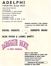 The music and lyrics were by Lionel Bart (left), the book by Alun Owen, choreography was by Paddy Stone, stage design by Sean Kenny and the director was Ted Kotcheff. I was publishing 'Mersey Beat' at the time and Alun, who had penned the screenplay to the Beatles ‘A Hard Day’s Night’, was to tell me all about the musical on one of our regular nights out at the Blue Angel Club in Liverpool in July 1964. He said that he began writing it two and a half years previously, commenting, “But I’ve been writing it on-and-off. During that time I’ve also written four television plays, two film scripts and a play". He also told me, “It’s a completely fictitious story all about contemporary Liverpool and a lot of the music has been based on old Liverpool and Irish folk songs. There is a beat club scene in the show, with a group who perform two beat numbers – they are going to augment the orchestra". The Blue Angel Club in Seel Street, Liverpool, was the haunt of The Beatles, Brian Epstein, Gerry & The Pacemakers and writers, TV producers and A&R men from around the world. Alun liked to visit the 'Blue' regularly from his home in Cardigan, Wales, because he had an ear for dialogue and felt that he derived lots of his humour from the conversations of Scousers. In fact, my wife Virginia told him of a chap who was trying to chat up a girl and she turned on him and said, “Who knitted your face and dropped a stitch?” and he used it in the musical. |