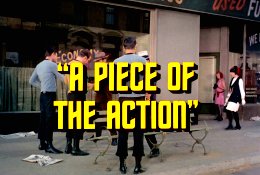 Back on board the Enterprise Spock is keen to know how Kirk will explain to Starfleet why a ship will need to be sent every year to collect their 'cut'. McCoy sheepishly admits that he thinks he left a communicator in Oxmyx's office. Kirk is sure that the Iotians will figure out how it works and half-jokes that in a few years 'they may be demanding a piece of OUR action'.