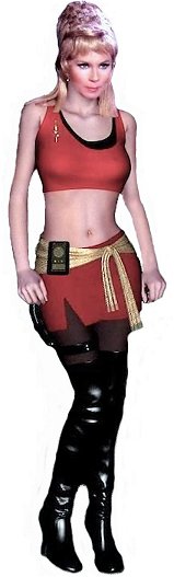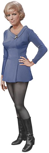 the role of women was concerned. Star Trek had the opportunity to have a woman play a character in a clear authority position but it instead backed off, preferring to use regular female characters that either came just short of what was originally envisioned or reaffirmed the traditional roles for women. According to Karen Blair, the rest of the female characters that appear in Star Trek are shallow, femme-objets that are disposed of at the end of each episode. In the earliest conception of the series and during the first pilot, the script called for a character by the name of 'Number One', the female first officer of the U.S.S. Enterprise. A strong, cool, almost emotionless character, she was intended to have experience and knowledge of ships' operations superior to that of the Captain. Number One (she was never given a proper name) did make it out of the notebook and into the first pilot for the series, 'The Cage', produced in 1964. Portrayed by Majel Barrett, she comes across as an extremely competent, authoritative officer committed to duty. When Captain Pike is forming up an away team to investigate the crash of the S.S. Columbia on Talos IV, Pike purposefully leaves her behind, not because she is a woman, but because he feels her to be the ship's most experienced officer, and she would be needed most on the ship should anything happen to the away team. When the pilot was shown to NBC executives, who in turn approved more work to produce the series, they ordered that Number One be cut from the format. According to a behind-the-scenes look at Star Trek hosted by Leonard Nimoy that was produced a few years back, their rationale was that the audience would not be able to identify with a woman in such a powerful authority position on board a starship (Nimoy). Unfortunately, the sexism of the 1960's was preventing the establishment of a progressive character because of traditional attitudes. Along with Number One went her costume design that differed very little from the costumes for the male characters. Throughout the rest of the series after the two pilots (The second pilot, the one finally accepted by NBC, was titled 'Where No Man Has Gone Before'), all the female members of the crew were dressed in short, skimpy skirts instead of the trousers that Number One and other female characters wore during the pilots. Although her character was cut, Ms. Barrett returned to the series to play Nurse Christine Chapel, a character more in line with what the network executives had in mind. With the demise of Number One, Star Trek's portrayal of women was to be, at best, ambivalent- wavering between an implicit belief in women as equals but an unwillingness to exemplify, in a tangible way, what was being professed. In general, "the Enterprise's female crew...are a generally placid lot, passively observing the action or servicing the male endeavour". The characters of Lt. Uhura and Yeoman Janice Rand speak to this ambivalence well. Lt. Uhura, played by Nichelle Nichols, is the highest ranking female officer to serve aboard the USS Enterprise during the three years that the series ran on network telvision. Lt. Uhura serves as communications officer and as fourth in command of the Enterprise. To have a woman in such a prominent position on board a starship with her responsibility is truly amazing for a television show in the 1960's. She is almost never portrayed as a stereotypical woman incapable of accomplishing anything without male assistance. As a strong, fierce character, she can take care of herself quite well. In the episode 'Mirror, Mirror, Uhura's task is to divert the attention of parallel-Sulu from his helmsman's post so that Engineer Scott can divert power to the transporter room necessary to send her, Captain Kirk, Dr. McCoy, and Lt. Cmdr. Scott back to their own universe. Taking advantage of parallel-Sulu's desire for her, she moves in to 'divert' his attention with a seemingly sexual advance, only to violently slap him back once the indicator light on the helmsman's position warning of the power shift has gone out. She then defends herself quite nicely against the angry parallel-Sulu with a knife. Nichelle Nichols had much to do with portraying her character and fighting for her character's status. |